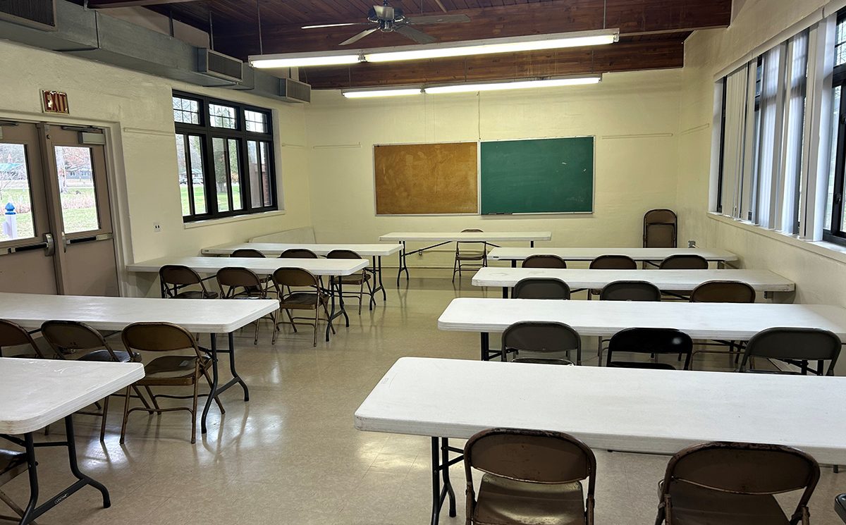 This 28’ x 20’ cozy, functional space is ideal for smaller gatherings and features a chalkboard and outside access. It’s perfect for instructional activities that can easily transition to the outdoors for a unique learning experience.