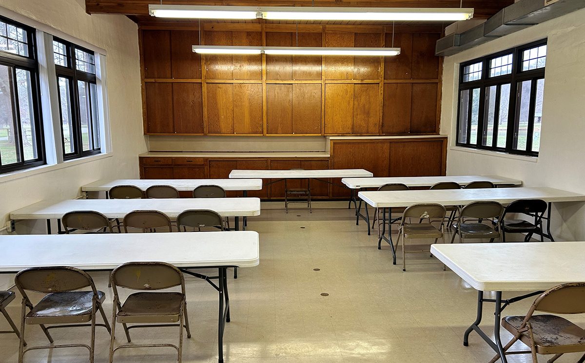 The Library is a compact room at 26’ x 20 and is suited for storage, small meetings, or as an add-on to Studio A. With direct access to the back of the Craft House, it’s just a short walk to the lake, adding charm and convenience to your event.
