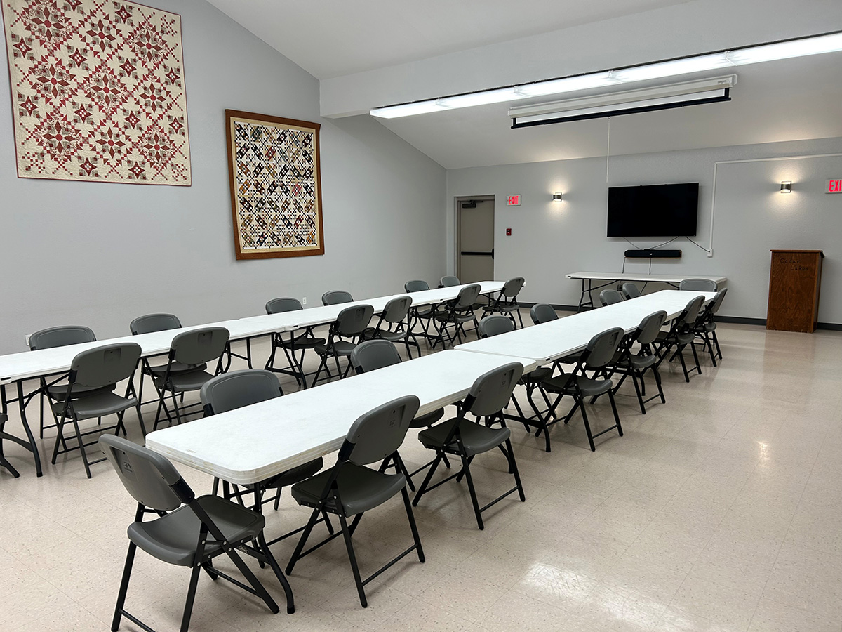 Located adjacent to Holt Lodge, this meeting room offers unmatched convenience and accessibility for group events. Equipped with a kitchenette featuring a refrigerator, microwave, sink, and ample counter space, it’s an ideal space for groups bringing their own prepared food. Popular among family reunions, quilting groups, and businesses, the room’s proximity to lodging makes it a practical choice for a variety of gatherings, especially those with ADA needs.